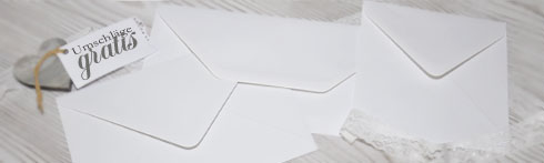 Unsere Briefumschläge erhalten Sie zu allen unseren Karten gratis dazu. Die Kuverts sind in dezent edlem weiß gehalten und sind mit einer Grammatur von 120 g/m² sehr stabil und hochwertig.