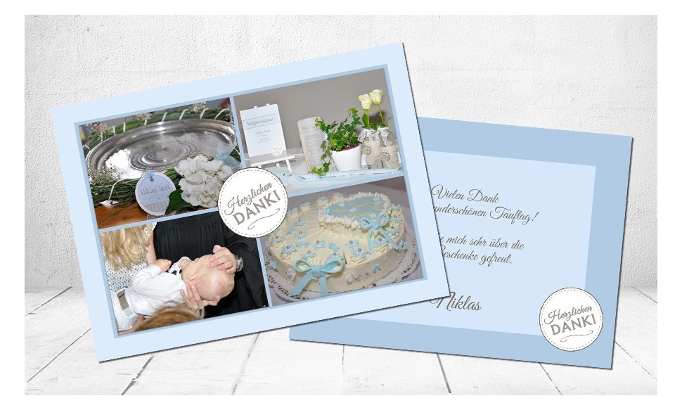 Herzlichen Dank sagen Sie mit dieser schönen Taufdanksagungskarte an Ihre lieben Verwandten und Freunde.